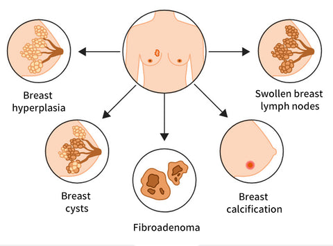 Breast health issues are commonly seen in females such as breast hyperplasia(ductal or lobular), breast cysts, fibroadenoma, breast calcification, and swollen breast lymph nodes.etc.